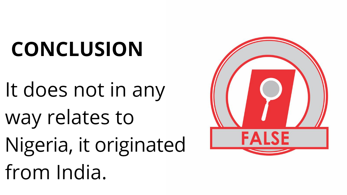 A check on Google revealed that the message is not in any way related to Nigeria but India. A further check on an Indian news website also confirmed the claim to be false “the Press Information Bureau of India has clarified the claim to be false. It further said the road map might belong to some other country but not India.”